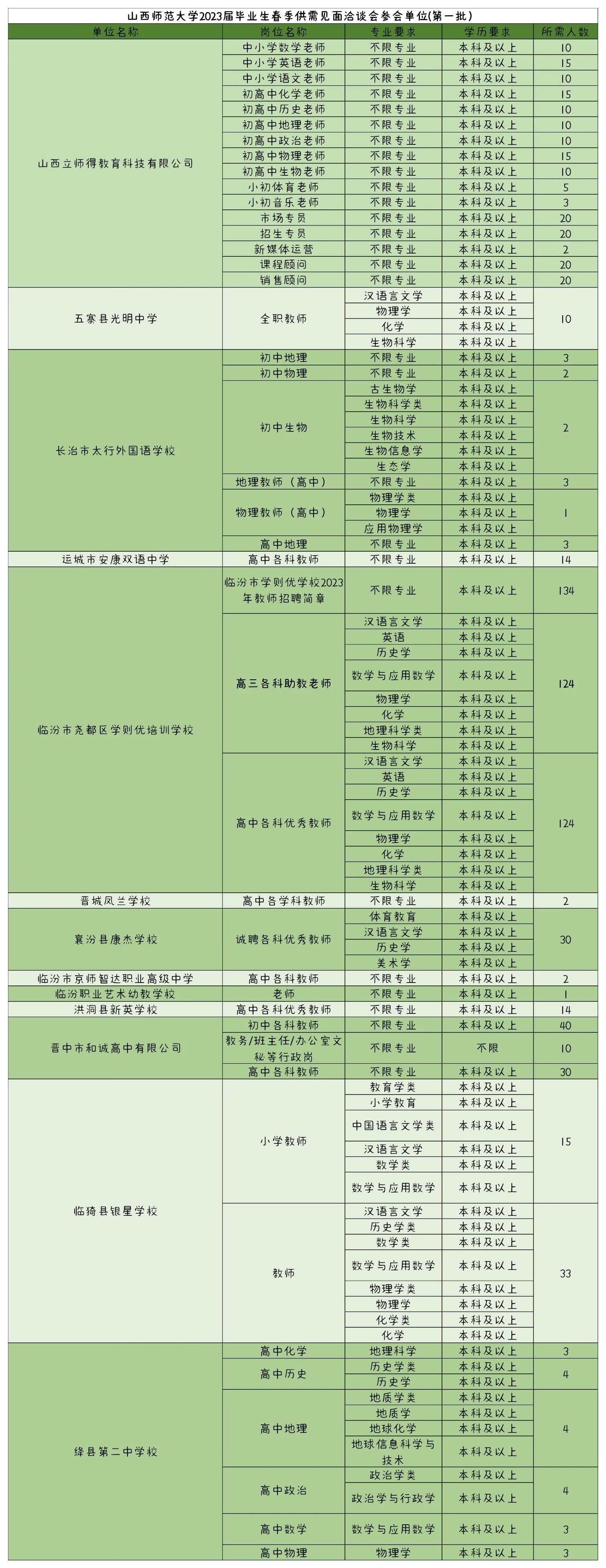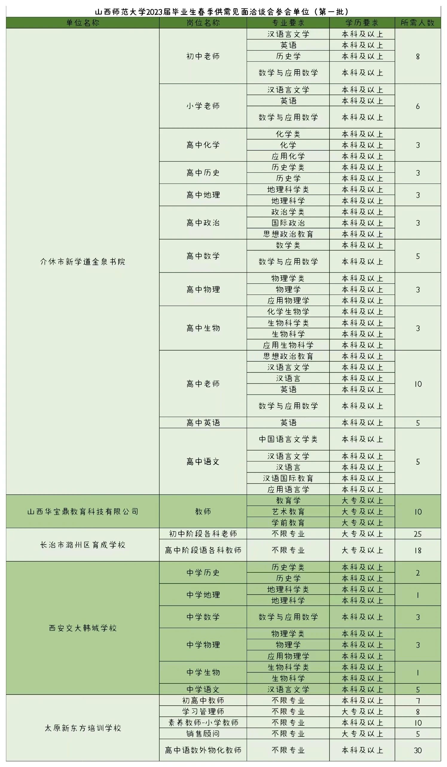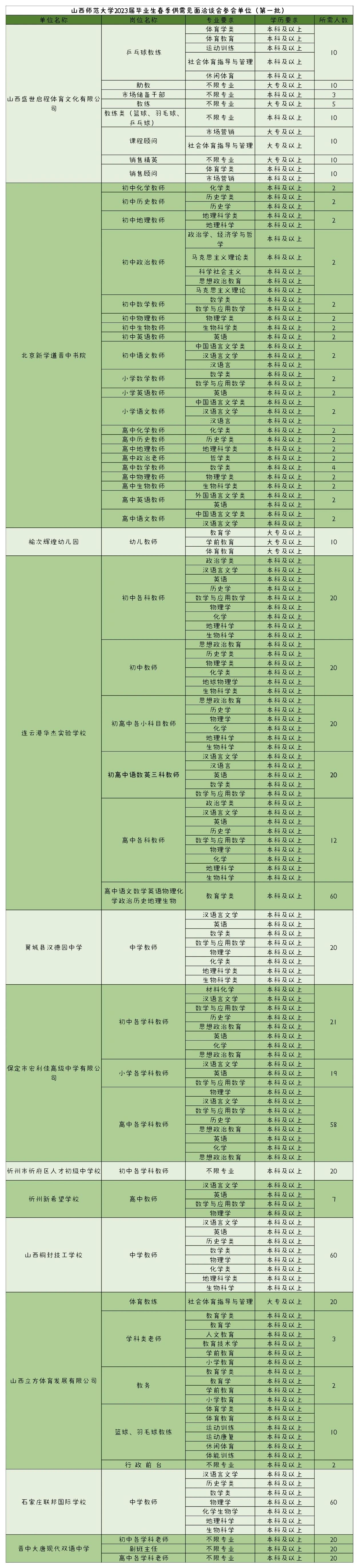 2023届毕业生春季供需见面洽谈会将于3月25日至26日举办,目前已有众多教育类单位发布岗位招聘信息,现将第一批参会单位及岗位需求公布如下,同学们如有兴趣可在线投递电子简历。