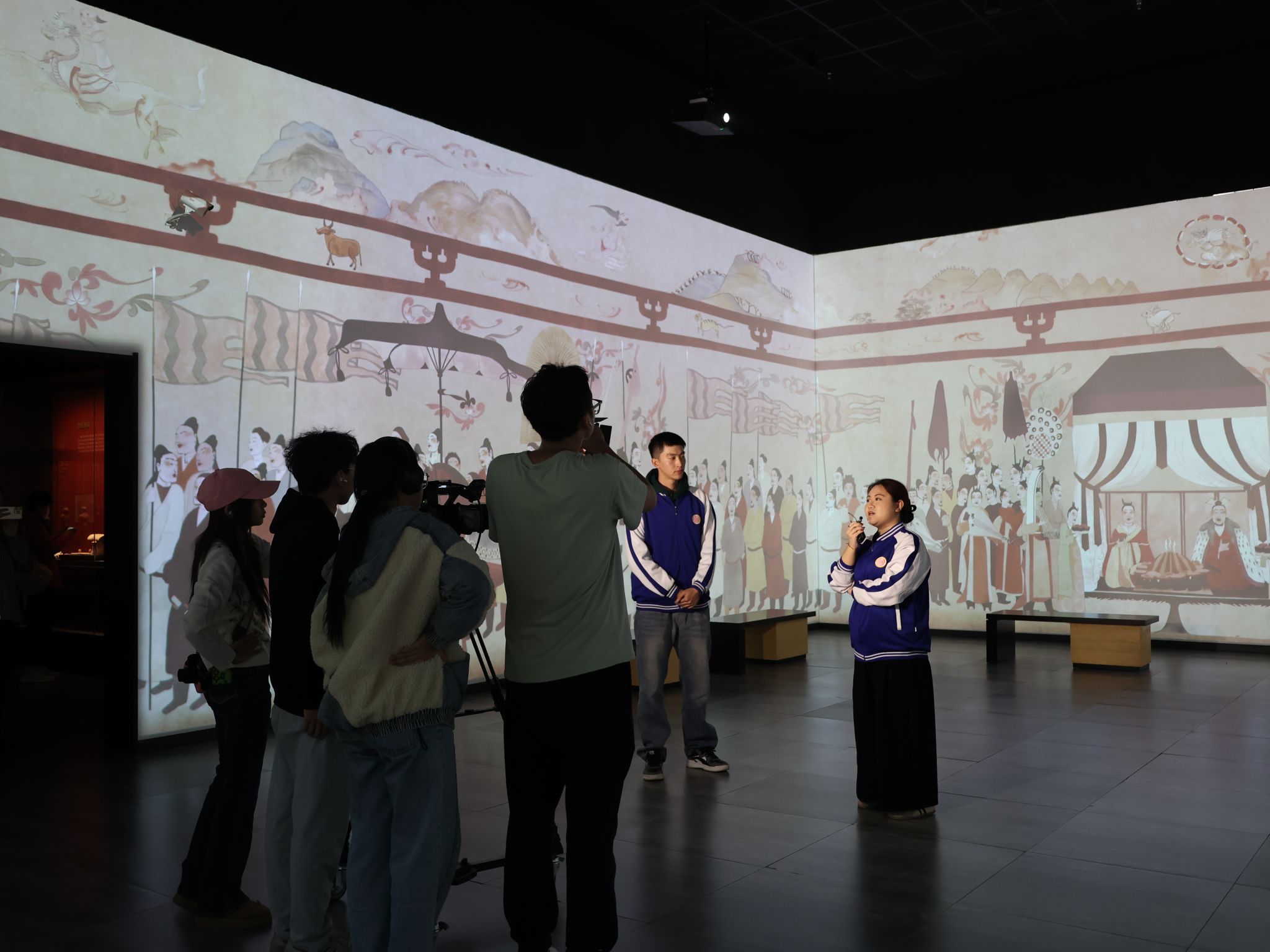 此次实践活动由电视节目策划、导播与演播厅技术、录音技术与艺术、影视照明艺术等四门课程共同完成,以践行“将课堂搬到现场”理念,通过直播“云游”博物馆,增强同学们的专业实践能力、团队协作能力和综合职业素养。活动中,同学们被分为四个小组,每组负责一个展厅的直播介绍。从“肇建金阳”的古老传说,到“名都并州”的繁华盛景;从“霸府别都”的历史变迁,再到“盛唐北都”的文化瑰宝,每个展厅直播都体现了专业教学与文化旅游事业的有机融合。为了确保直播的顺利进行,同学们在前期进行了充分的准备,不仅多次到博物馆实地考察,还进行了多次模拟演练。