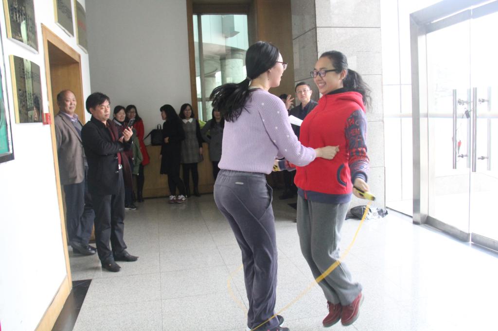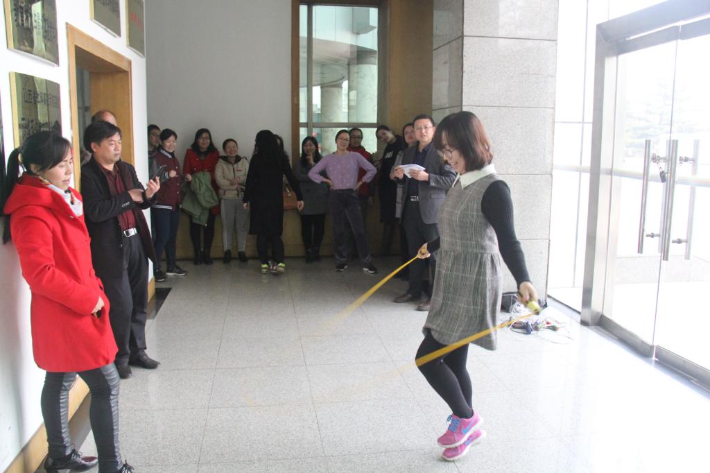 “每天锻炼一小时,健康工作五十年,幸福生活一辈子”。emc易倍工会将“庆三八·我健康”定为今年三八节的主题。围绕主题,公司邀请了临汾市IPA国际注册礼仪培训师、国家二级心理咨询师陈文平老师做了女性健康知识讲座,陈老师围绕身体健康和心理健康两个方面进行了讲解,并现场教会大家几节简单易行的健身操。之后院工会组织了女教师跳绳比赛,比赛分为个人一分钟计时赛和二人同跳一分钟计时赛。最后院工会主席范晓东宣布了跳绳比赛和摄影比赛的获奖名单。