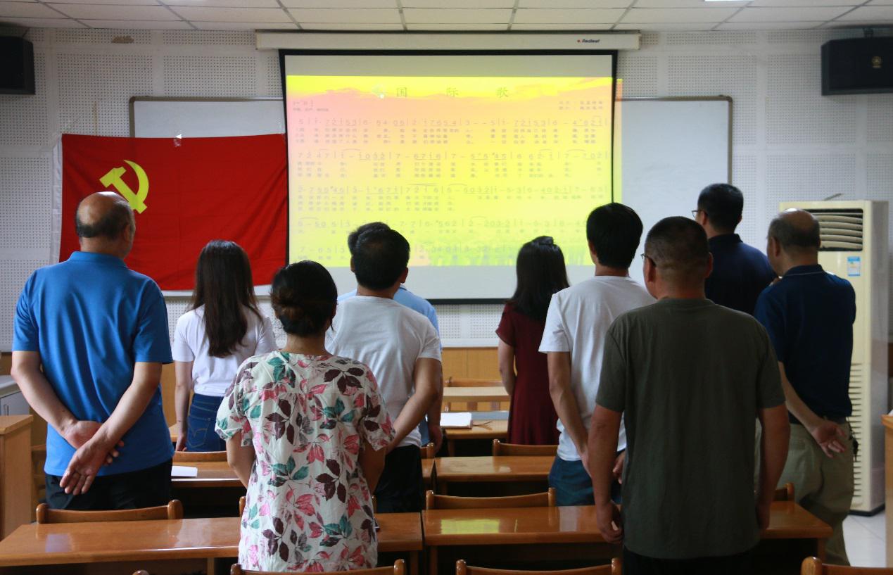 活动共分三个部分,第一部分是奏唱《国际歌》;第二部分是面对党旗庄严宣誓,重温入党誓词;第三部分是支部全体党员共同学习交流人民日报文章《入党干什么、当官干什么,共产党员习近平这样说》。