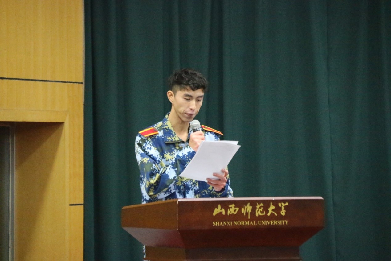 播音与主持艺术专业陈皓男同学代表新生发言。他向同学们分享了步入大学的感想,作为新时代新青年,要志存高远,胸怀远大理想,牢记习近平总书记对青年人的寄语。同时,要尊师肯学,持之以恒;严于律己,树立规范意识;尊敬师长,友爱同学,度过美好的大公司园生活。