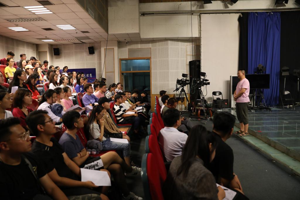 随后,影视制作与实训中心(公司电视台)马毅老师、“Imagination工作室”李沛老师、“师大新视听”郭梁老师、“声生不息朗诵艺术团”负责员工后向新生讲解了各自实践平台的工作性质、工作方式、考核方案等内容。宣讲完毕后,员工现场向各位负责老师提问,详细了解各个实践平台的相关情况。