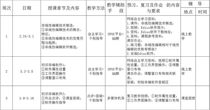 6.根据公司要求,每位教师应提供课程的详细教学方案,方案应注意将疫情期间的教学(暂按照2周安排)与正常开学后的教学计划衔接起来。具体的指导意见如下:
