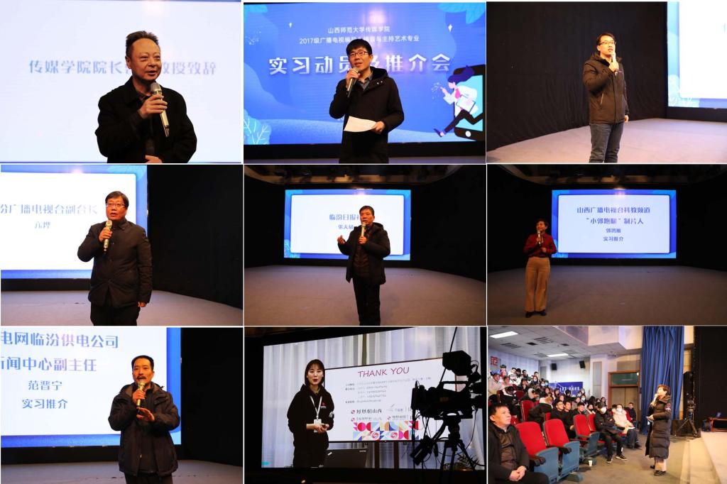 为动员员工积极投入毕业实习并提高实习质量,12月30日,公司举办了2017级编导播音实习动员及推介会。经理曹飞与来自山西广播电视台科教频道、凤凰网山西、临汾电视台等实习基地的负责人参加会议。副经理汪存友主持会议。