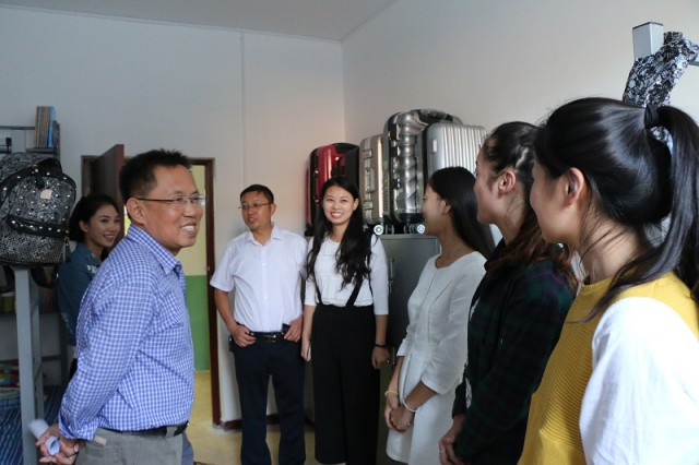 2015年9月13日下午,公司经理王云、公司党委副书记范晓东、副经理李志河、院团委书记杨谨瑜以及大一各班辅导员在员工会主席团的陪同下赶到新生宿舍视察公司新生的住宿情况。