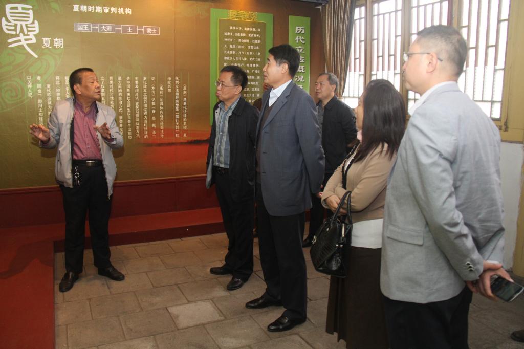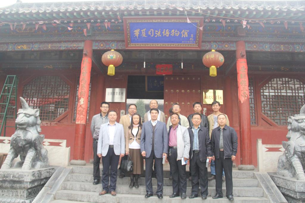 上午8点半,中心组一行首先来到位于洪洞县甘亭镇士师村的我国首家司法博物馆——华夏司法博物馆。该博物馆修建在法祖“皋陶”故里,2005年在原皋陶祠的遗址上复原,前最高法院经理肖扬题写了匾额,目前是临汾市法制教育基地。博物馆馆长贺伟首先向大家详细介绍了关于尧舜禹时期法祖“皋陶”的历史传说以及我国法制起源于“礼”和“兵”的观点。随后又带领我们参观了该馆的五个展厅:“法之源”、“历史篇”、“现代篇”、“人物篇”、“皋陶后裔姓氏纪念堂”,向我们全面展示了华夏司法文化的发展演变过程。经过参观考察,大家对“法与国共生”、“法与国同源”、“依法治国”等理念有了更深的理解和认识,进一步明确学法、知法、用法的重要性。