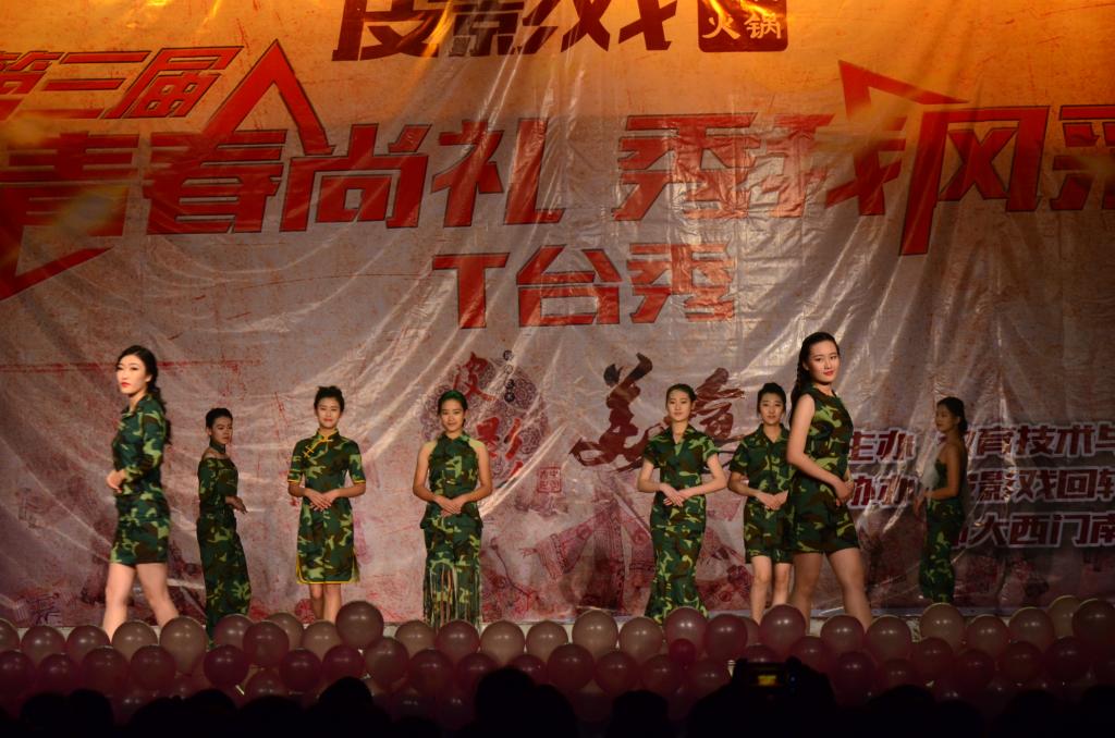 此次演出分为文艺风、中国风、嘻哈风、摇滚风、彩妆风五个主题。本届T台秀融入新媒体互动元素,点击量、参与量之大,不仅为本次活动增添了亮点与乐趣更体现了本次活动的号召力。传媒学子穿针引线针织梦想,绿色环保致敬青春,他们以精心的设计,不羁的剪裁手法,创造出款款别具一格的服饰。美丽的T台模特们时而嬿婉回风,时而炫酷绝伦,时而含蓄优美,时而妩媚奔放,使观众们陶醉于这视觉盛宴。期间穿插了动听的吉他弹唱《斑马》,动感的舞蹈串烧《Fantastic Baby》,热情奔放的草裙舞《WaKa WaKa》,将现场气氛一次次推向高潮,掌声和欢呼声不绝于耳。