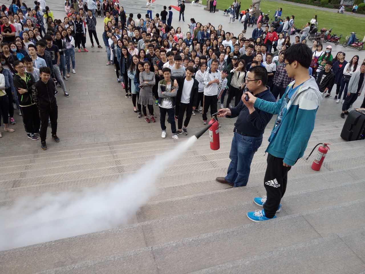 演练结束后,公司保卫处消防科张科长对本次演练情况作了现场总结讲评。他指出,整个演练活动组织指挥严密、应急响应迅速、避震方法科学、人员疏散安全有序,肯定了此次演练达到的良好效果。之后他又对灭火器的使用进行了讲解,使同学们初步掌握了灭火器和消防栓的使用方法。