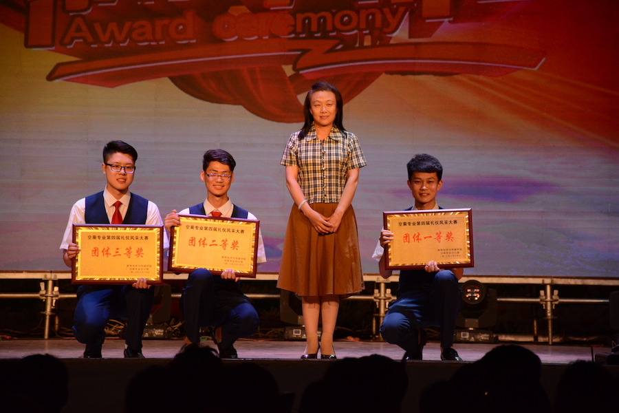最后,空乘1503班获得本次大赛一等奖,空乘1501班获得二等奖,空乘1505班获得三等奖。