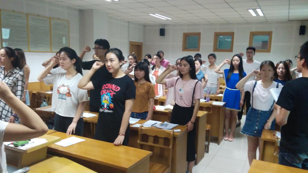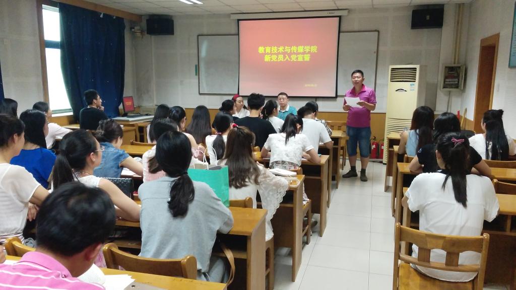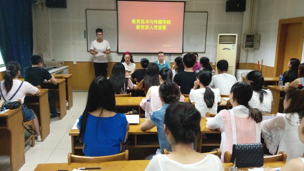 仪式在雄壮的《国际歌》中拉开帷幕。党支部宣传委员郭雨馨老师宣读新党员名单。全体员工党员举起右拳,面向党旗,庄严宣誓。1402班党员郑孟曜作为代表向14名新党员表示热烈欢迎和诚挚祝贺。他希望新党员要进一步加强学习和理论修养,率先垂范,切实履行党员义务,发挥党员的先锋模范作用,不但要在组织上入党,更要在思想上、行动上入党。新党员代表王萍华同学在发言中表示,今后会在学习上端正态度,在工作上一丝不苟,以党员的标准严格要求自己,不断提升思想觉悟,遵守党纪,严于律己。