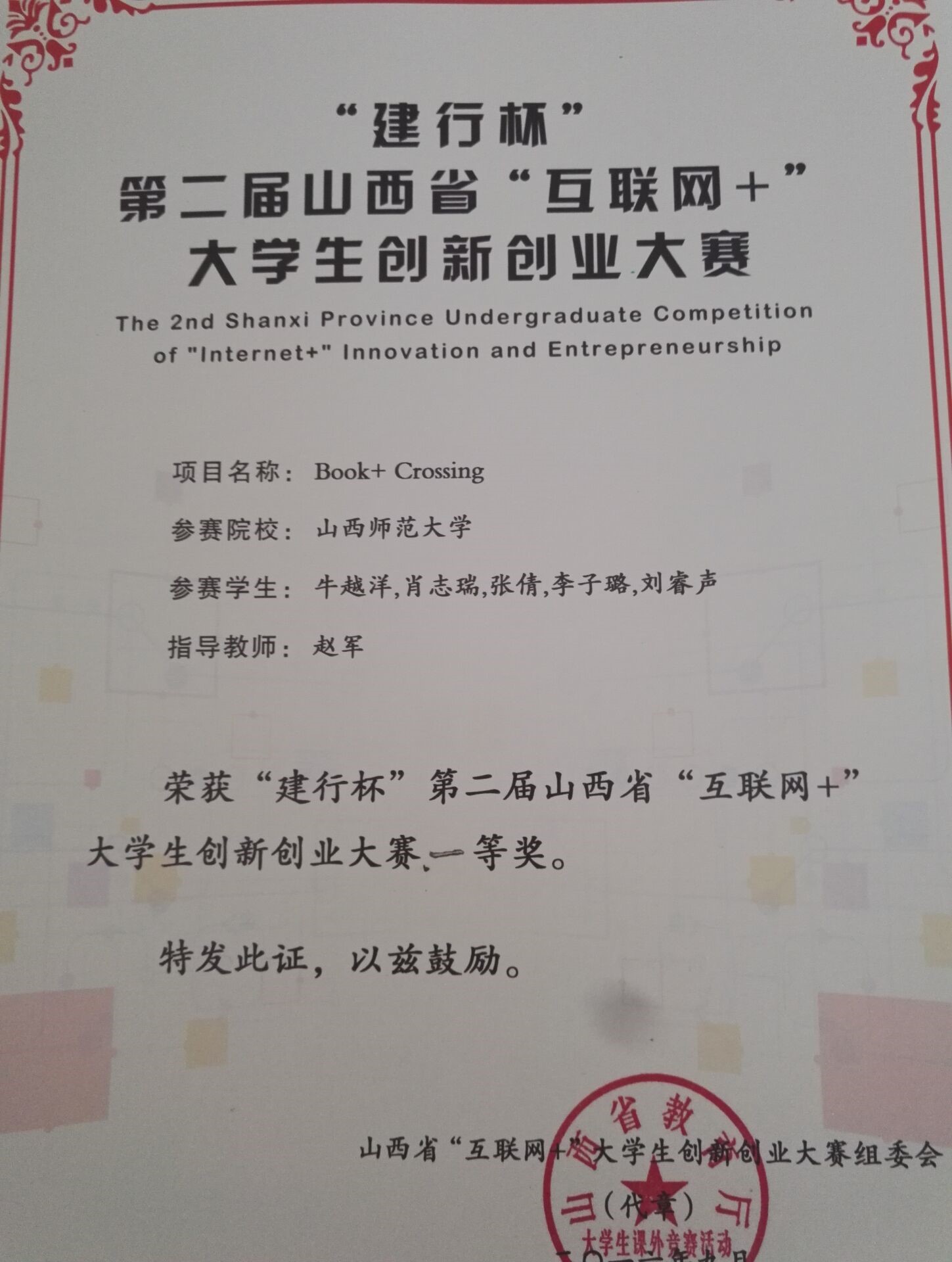 Book+Crossing项目团队获一等奖,并获得奖金3000元