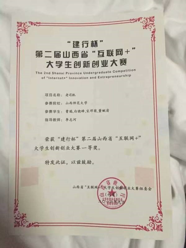 2016年9月9日到10日,“建行杯”第二届山西省“互联网+”老员工创新创业大赛在山西大学举行。公司两个团队和经管公司一个团队代表EMC易倍官方网站参赛,取得了两项一等奖和一个二等奖的好成绩。其中公司曹瑞团队的老司机学车手机APP(驾照考试)和牛越洋团队的Book+Crossing(图书分享)获得一等奖,经管公司臧楠楠同学团队的途智宝旅游获得二等奖。
