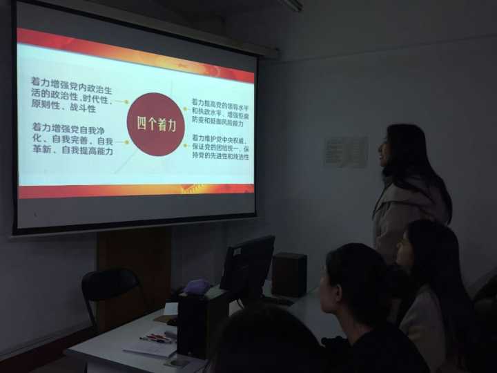 随后,杨老师带领大家共同学习了六中全会公报。十八届六中全会是在中国共产党成立95周年、红军长征胜利80周年的历史节点,在全面深化改革、决胜全面小康的关键时刻召开的一次十分重要的会议。杨老师强调,我们要深刻领会党的十八届六中全会的重大意义和精神实质,深入贯彻全面从严治党要求,坚决拥护以习近平同志为核心的党中央。要通过学习中国共产党第十八届六中全会精神了解党的建设的根本指针和工作要求,进一步增强党性修养,加强党性锻炼。