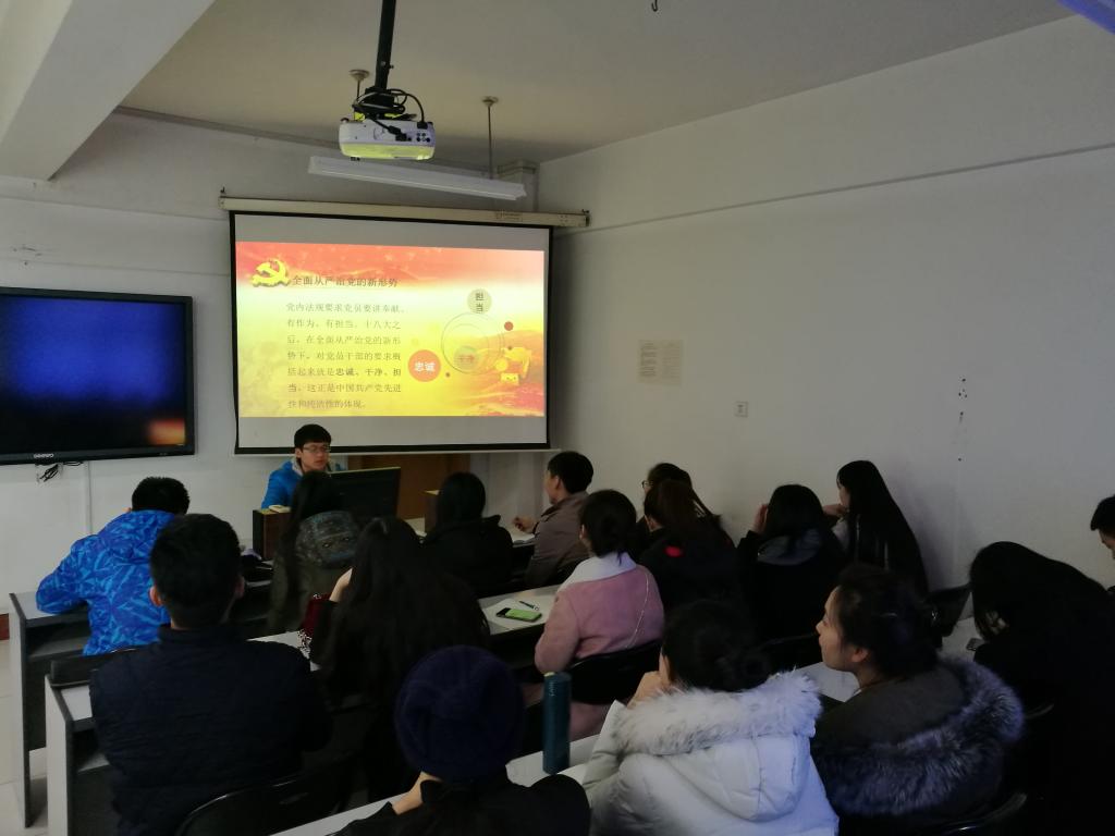 随后,员工代表郝海军就“党员责任,担当意识”的主题进行了相关发言。他通过播放ppt的形式,从“责任担当是共产党员的基本素质”、“全面从严治党新常态下,党员责任担当意识存在的问题”、“如何在实践中落实共产党员的责任担当”三方面具体阐述了共产党员应如何树立责任意识,并将“讲奉献,有作为”落到实处。
