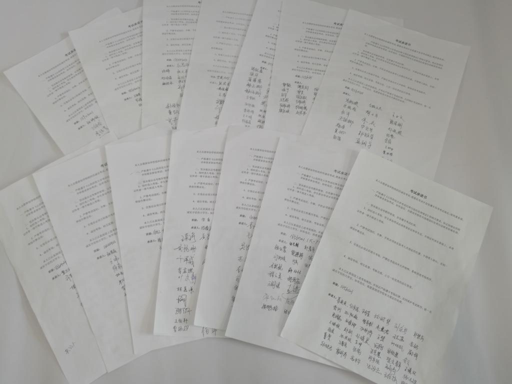 在6月15日-18日,各班陆续开展了签订诚信考试承诺书活动。院团委员工会参照公司考试规定制作了诚信考试承诺书,各班级组织本班员工进行了学习,让每位员工在认真阅读了诚信考试承诺的相关要求与注意事项后进行签字。这项活动不仅将“诚信考试,诚信做人”的良好品德种子播撒在每一位员工心里,而且也教育和引导全体员工成为良好学风、考风的传播者和践行者。