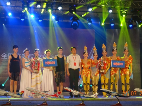 7月11日至20日,由教育部高校毕业生就业协会高校空乘分会主办,中国民航报社、中国民航人力资源开发中心、教育部高校毕业生就业协会、中国航空运输协会飞行乘务员委员会、中国教育电视台协办,北京广慧金通教育科技有限公司承办的“2017年全国高等院校空乘专业推介展示会”在北京隆重举行。公司空乘专业员工代表队经过几轮激烈的角逐,继2015年、2016年夺得冠军后,今年再次荣获团体综合冠军。公司党委书记符惠明、副董事长王云、公司党委书记邵晓慧、emc易倍经理曹飞、北京金通公司副总兼驻师大办事处主任姜易君出席了闭幕式暨颁奖晚会。