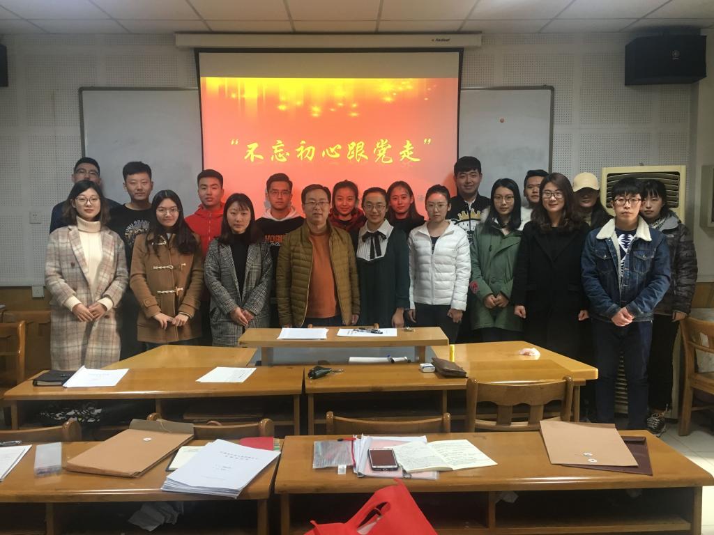 支部书记王银介绍了举办“不忘初心跟党走”主题党日活动初衷。他讲到,在全党全国、全省全校掀起学习宣传贯彻十九大精神的热潮中,作为党的基层组织,要发挥好示范引领作用;作为一名党员,要发挥好先锋模范作用;要将学习宣传贯彻党的十九大精神同自身学习工作紧密地结合起来,对党的十九大精神真正学懂弄通做实,武装头脑、指导实践,内化于心、外化于行。