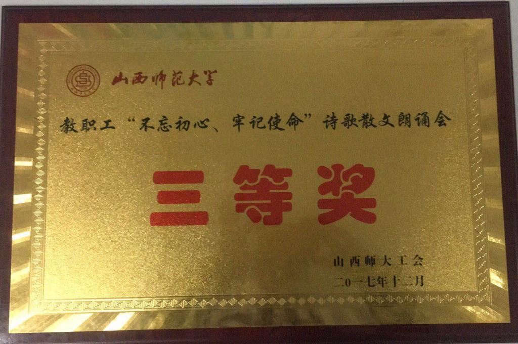 12月29日,公司工会主办的“不忘初心、牢记使命”教职工诗歌散文朗诵会在文化艺术活动中心举行。公司参赛的合诵节目《梦想照亮中国》荣获全校三等奖。