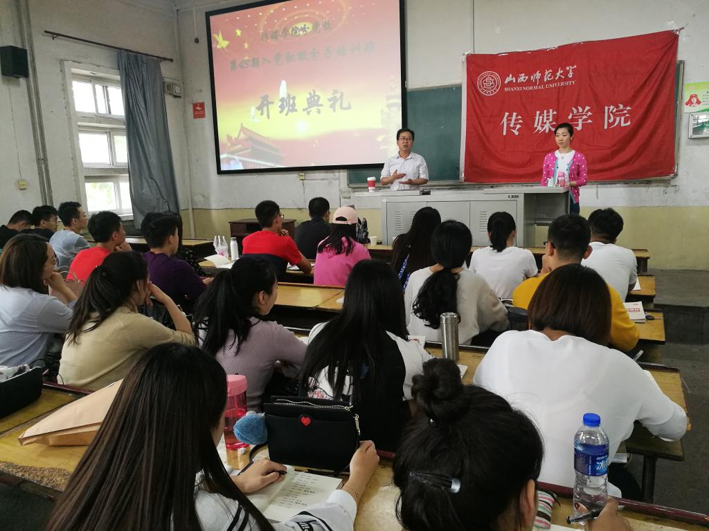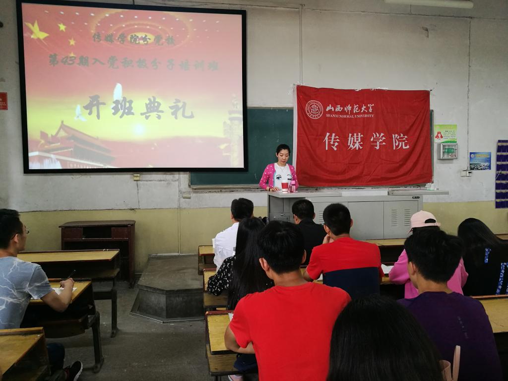 5月12日下午15时,公司在02218教室举行了第43期申请入党积极分子培训班开班典礼。公司党委副书记、传媒员工党支部书记王银老师,行政管理党支部书记赵军老师以及89名积极分子参加了此次开班典礼。仪式由院团委书记、空中乘务党支部书记杨谨瑜老师主持。