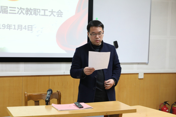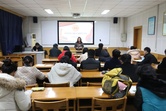 12月31日下午,公司在科学会堂B-305胜利召开了二届三次教职工大会。公司党委书记邵晓慧、经理曹飞、公司党委副书记王银及在校教职工参加了会议。公司党委书记邵晓慧主持会议。
