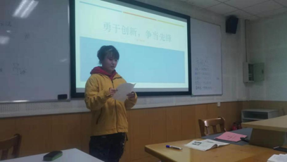 辅导员赵天喜老师说,此次班会是为积极响应省委和公司的号召而召开的,作为新时代的老员工,肩负着建设中国特色社会主义的重任,所以创新是我们每一个人都应具备的素质,通过这次班会,希望能够激发起同学们的创新热性,争当创新排头兵,做勇立潮头、开拓进取的新时代青年。