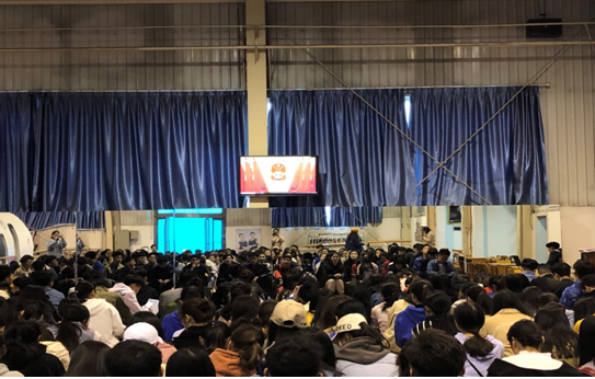 2019年3月22日,emc易倍组织空乘专业18级全体员工在模拟舱观看习近平总书记在庆祝改革开放四十周年大会上的重要讲话活动。