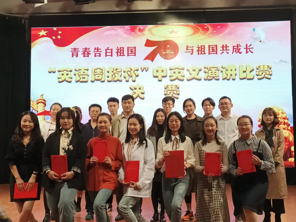 10月11日,第三届“英语周报杯”中文演讲比赛决赛在科学会堂一层演播厅落下帷幕,此次比赛由EMC易倍官方网站主办,英语周报社、教务处、校团委承办,emc易倍协办。公司党委副书记高兵亲临现场观看比赛,大赛邀请了大连话剧团导演、编剧、现代文理公司教师肖晋、emc易倍教师郭梁、张雪、刘竞阳以及北京广慧金通教育科技有限公司驻公司工作处副主任王美玲老师担任评委。