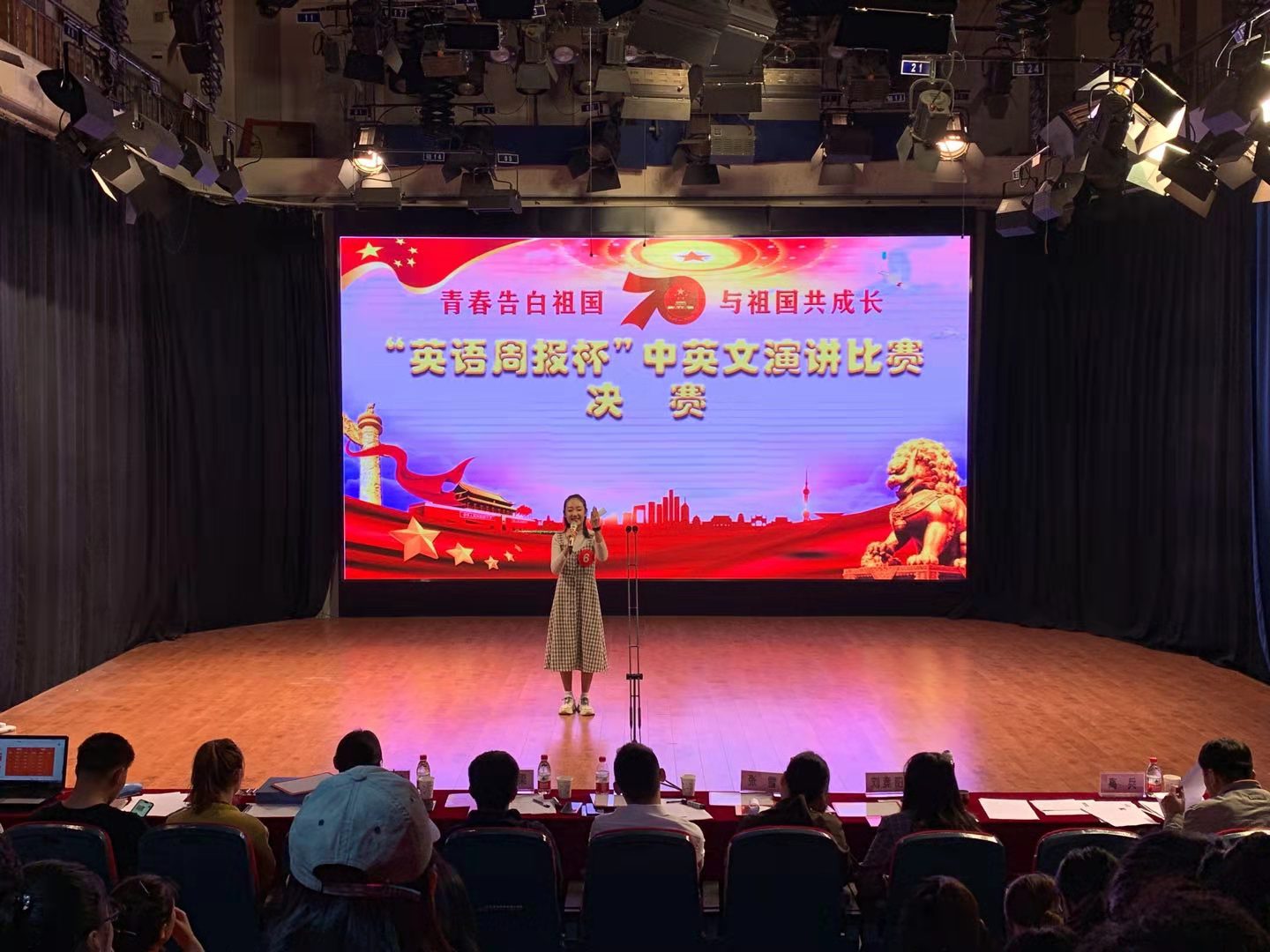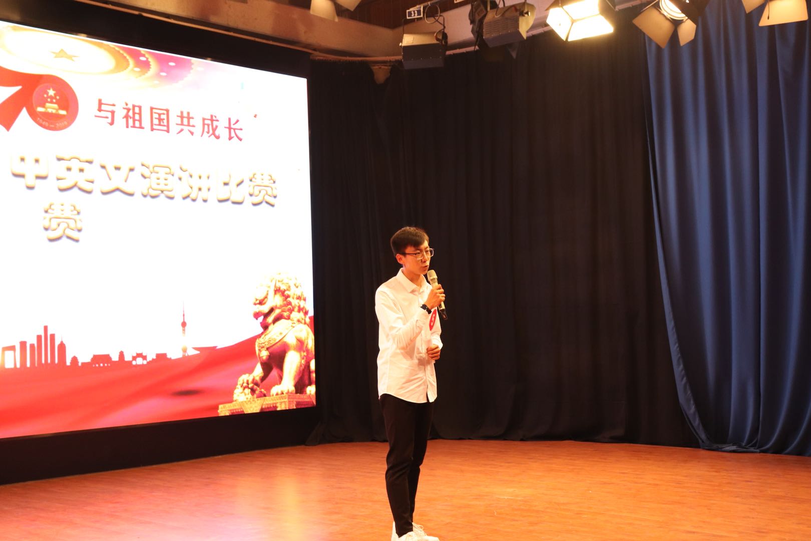 演讲比赛在主持人精彩的开场下拉开帷幕。非专业组选手首先亮相,柴一甲同学的《变》、洪薇同学的《少年强则中国强》以及陈烁同学的《回首往昔,砥砺前行》等作品都让观众们深入人心,让大家感受到了祖国70年的变化。专业组选手也不甘示弱,裴小雨同学的《用思想点亮人生》、樊效江同学的《改变,怎么样》和李容琅同学的《我和我的祖国共成长》等作品都紧扣演讲主题、慷慨激昂、挥洒自如地讲述了自己和祖国母亲的故事,字里行间都蕴含着真挚的情感,他们用饱满的激情,表达着自己对祖国的爱,引起了在场观众的强烈共鸣,博得台下同学们的阵阵掌声。演讲结束后,肖晋老师进行了对选手表现进行了点评。