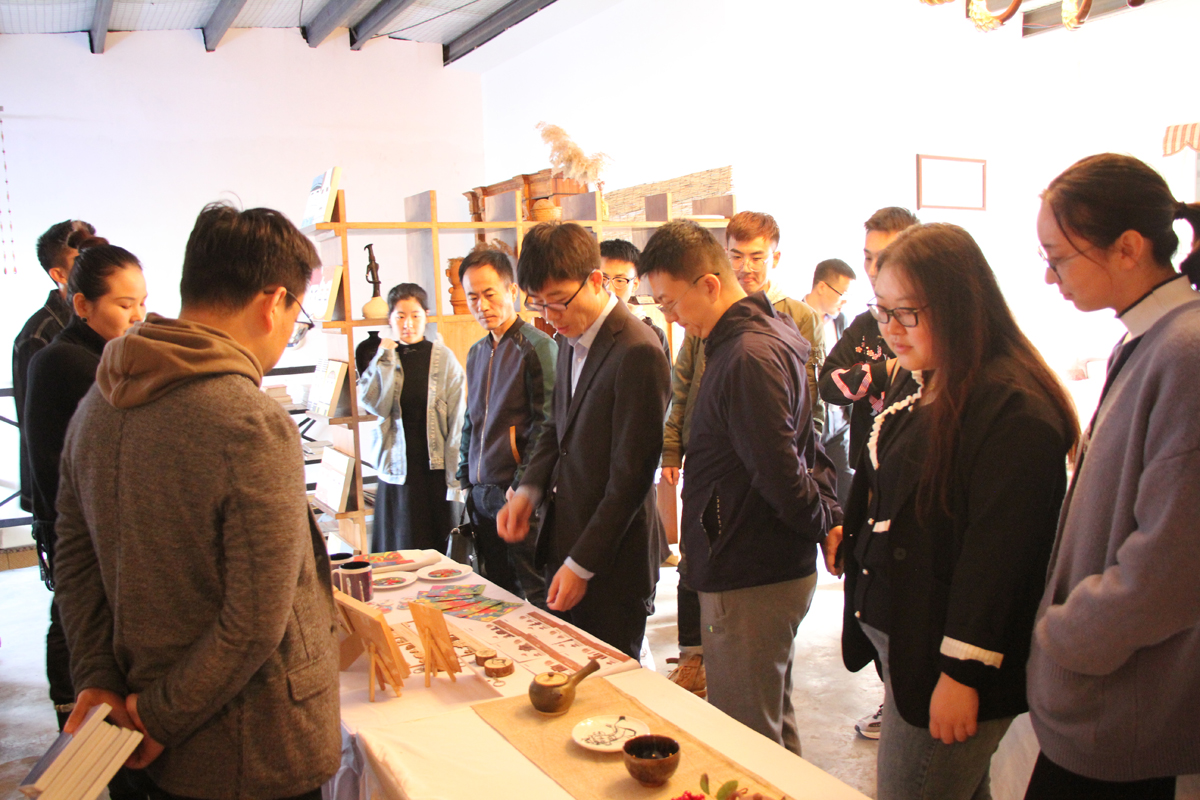 正值山西临汾北京宋庄第二届文化艺术品鉴交流展览会在园区举办,汪存友副经理一行首先在智培焕总经理的陪同下参观了文创作品展览。随后,双方在园区会议室进行了实习作品交接和实习工作座谈。园方企业表达了对公司员工实习工作的肯定,也提出了一些改进的建议。公司教师也感谢园方提供的帮助,并就实习中存在的问题提出了一些改进的措施。双方交谈坦诚友好富有建设性。