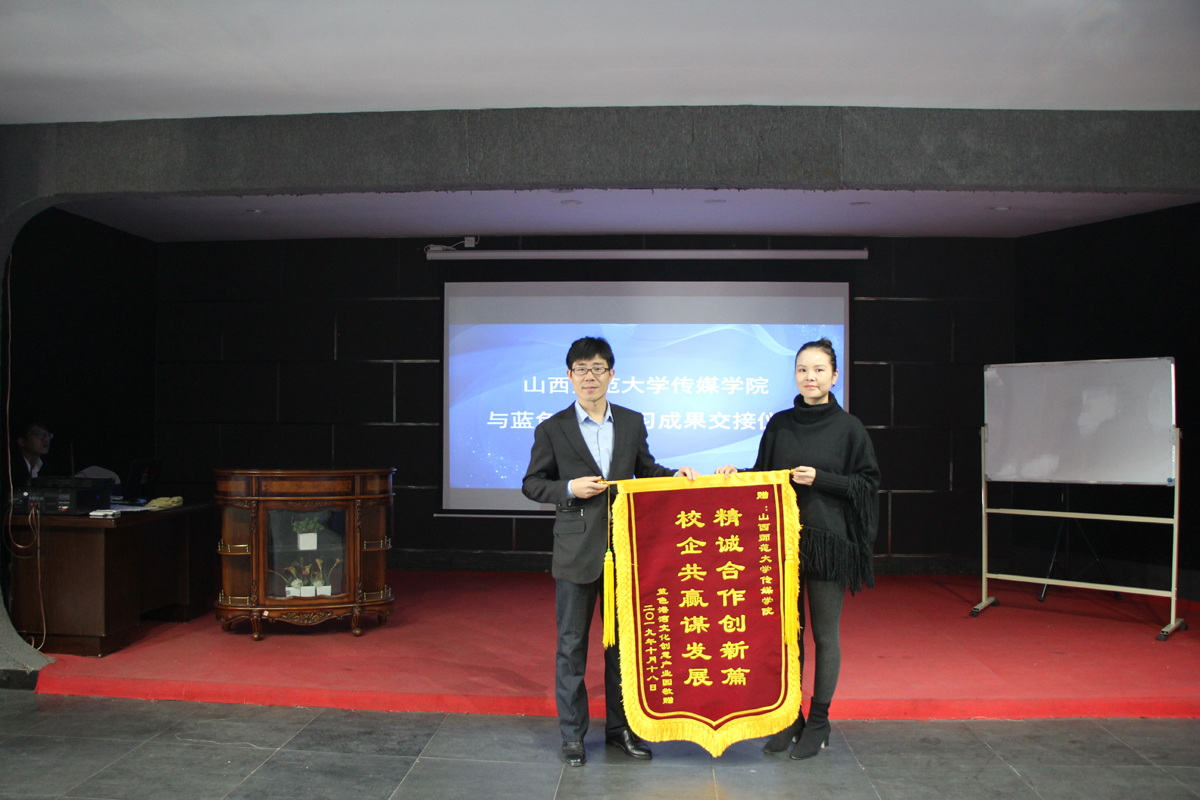 10月19日,汪存友副经理与编播系部分实习指导老师赴公司实习基地临汾蓝色港湾文化创意产业园调研探讨实习工作,并向园方赠送员工实习作品。产业园总经理智培焕与园区员工实习单位参加座谈,并向公司赠送锦旗。