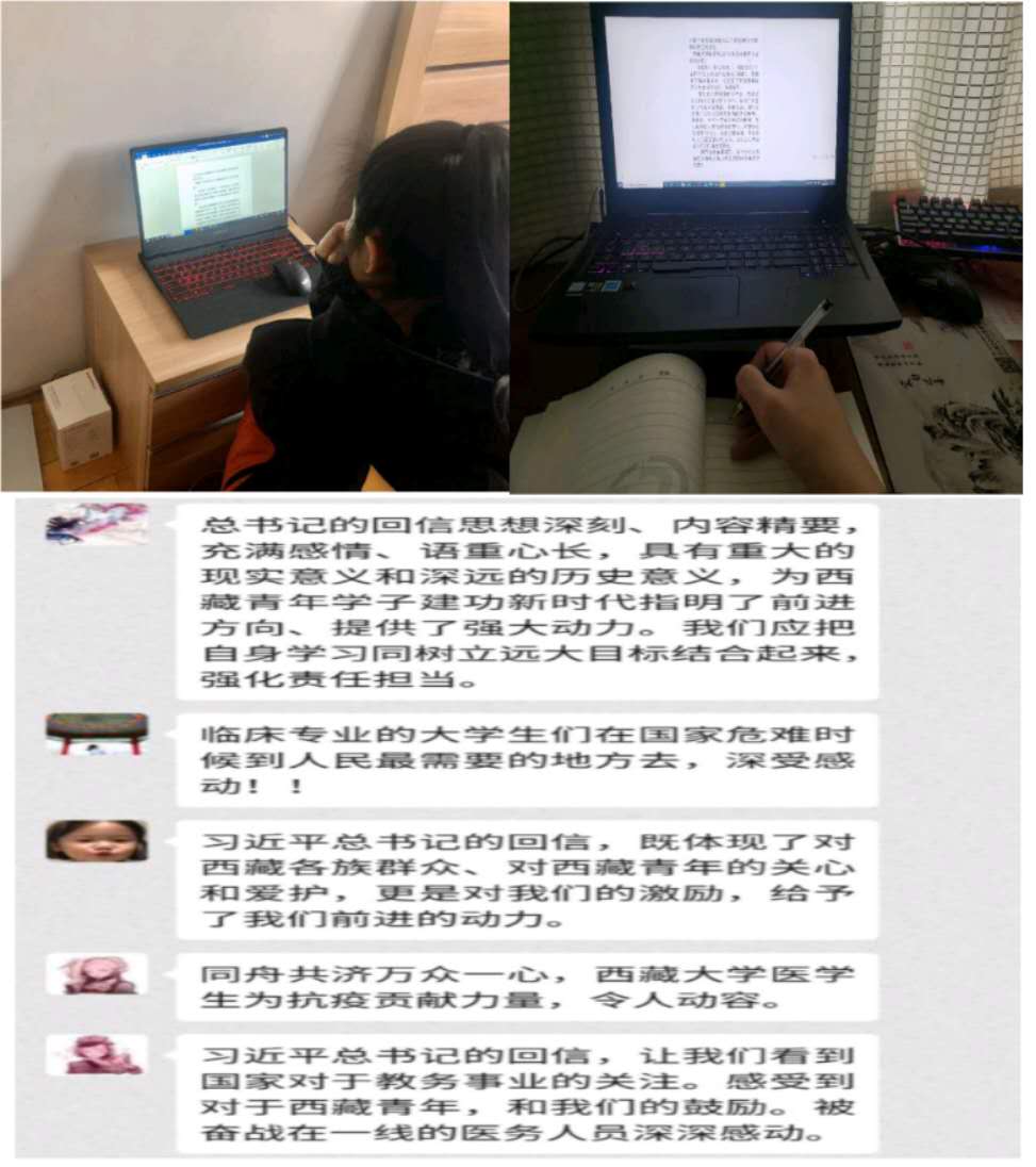 “希望你们珍惜学习时光,练就过硬本领,毕业后到人民最需要的地方去,以仁心仁术造福人民特别是基层群众。”藏历新年来临之际,中共中央总书记、国家主席、中央军委主席习近平2月21日给正在北京大学首钢医院实习的西藏大学医公司员工回信,引发强烈反响。为深入贯彻学习习近平总书记重要回信精神,3月7日,emc易倍广编1801班以宿舍为单位,组织开展了线上学习习近平总书记给西藏大学员工的回信内容、进行了激烈的讨论。