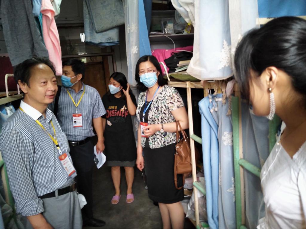 下午,公司党委书记靳晓涛、经理曹飞、公司党委副书记高兵以及辅导员赵军来到员工宿舍,看望慰问毕业生,了解同学们的论文答辩情况、就业情况、毕业去向情况等,表达对毕业生的深切关怀和美好祝愿,并叮嘱同学们返程过程中做好个人防护,注意财物和交通安全。