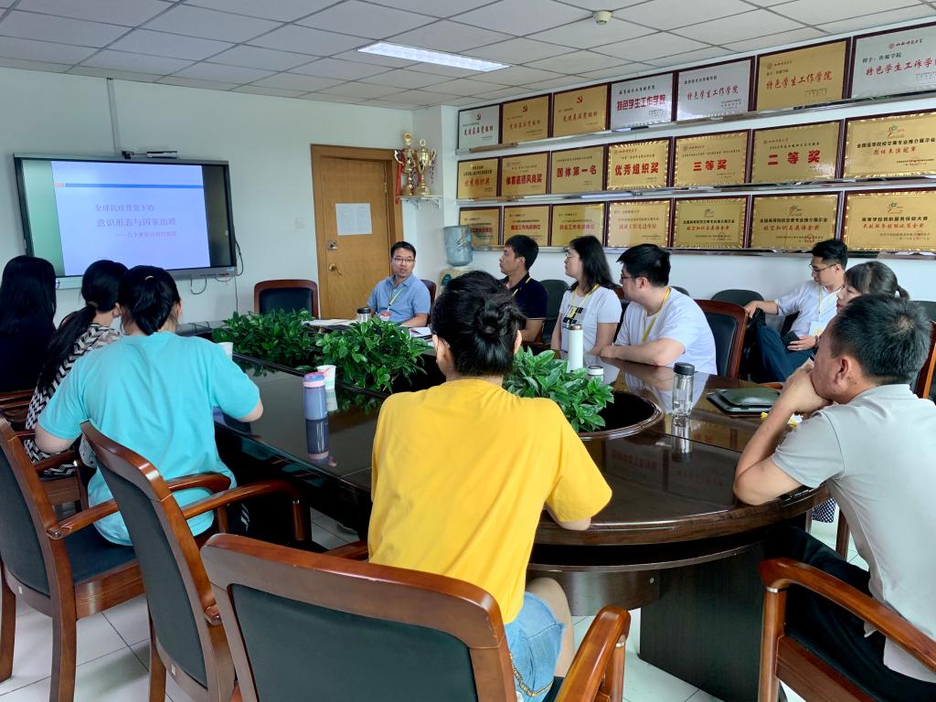 在活动中,郝建国首先带领大家从当前国内外疫情发展态势、疫情期间的中美关系、我国的应对措施等几个方面系统梳理了近半年来全球抗疫背景下国际国内形势的发展演变和在这个过程中我国沉着应对、化危为机、稳中求进的战略举措。随后,大家重点回顾学习了总书记在山西考察期间的重要讲话。重温总书记“坚持稳中求进总基调”、“牢固树立绿水青山就是金山银山的理念”、“坚持以人民为中心的发展思想”、“坚定不移加强党的领导和党的建设”等讲话内容及其深刻内涵。结合省委书记楼阳生在中北大学宣讲总书记重要讲话重要指示精神时的内容,大家讨论了高校在我省聚焦“六新”、转型发展、先行先试、蹚出一条新路过程中的任务和使命。