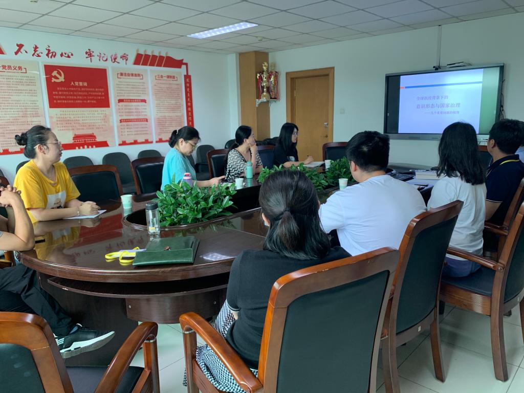 还学习了全国“两会”期间,习近平总书记“必须坚持人民至上、紧紧依靠人民、不断造福人民、牢牢植根人民”、“防范化解重大疫情和突发公共卫生风险,事关国家安全和发展,事关社会政治大局稳定”等讲话精神。大家还讨论了“民法典”出台和香港国安法拟定的重要意义。结合近期的一些新闻事件,大家认为国家治理体系和治理能力现代化的建设任重道远需要继续大力推进。