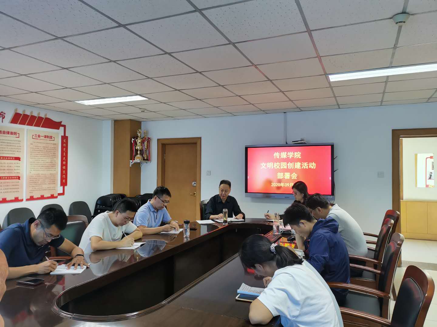9月18日上午,公司在科学会堂B座503会议室召开文明校园创建活动部署会与安全工作会议。院领导、支部书记、系主任、公司中层干部、专职辅导员参加了会议,经理曹飞主持会议。