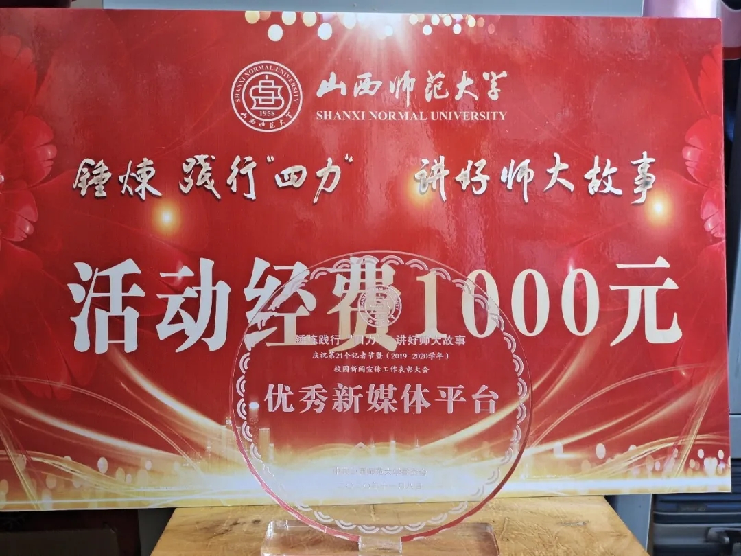公司“传媒学子”微信公众号平台荣获“2019——2020学年度优秀新媒体平台”奖项,同时,获得活动经费1000元。“传媒学子”微信公众平台能获得这样的成绩,离不开公司平台运营者的努力,更加离不开公司老师与领导们的指导和支持。在接下来的工作中,我们会更加努力,不负众望,将“传媒学子”打造成真正具有院特色,真正展现公司风采的微信公众平台!