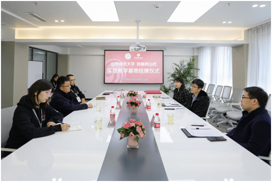 11月26日,公司与凤凰网山西建立实践教学基地挂牌仪式在太原举行。凤凰网山西总裁高明勇、视频总监段志敏、人力总监韩小云、副经理汪存友、编播系主任郝建国、教师赵琳出席挂牌仪式,并进行了座谈。