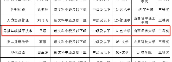 日前,省教育厅第三届全国高校教师教学创新大赛山西赛区组委会公示了省赛获奖名单,公司广播电视编导专业教师吕媛以《导播与演播厅技术》获得新文科中级组三等奖。