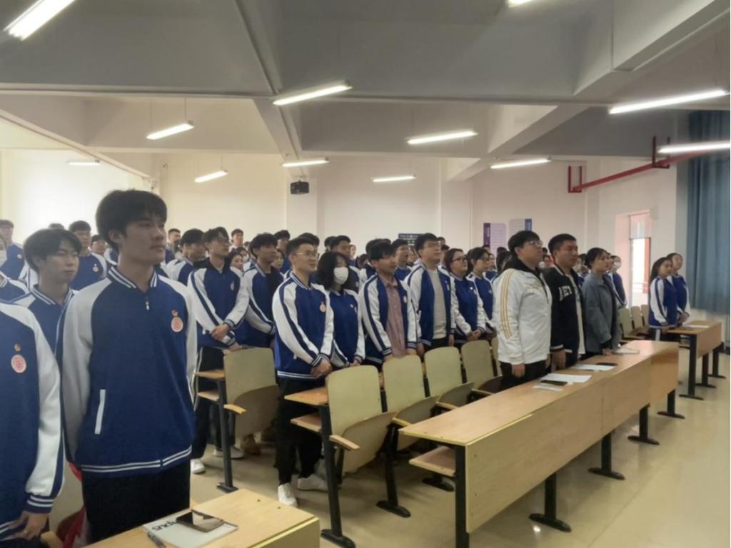 开班仪式在庄严的国歌声中拉开了帷幕。负责人曹利楷丹从“青马工程”的发展历程、基本内容以及意义等方面进行了介绍;2022年优秀学员代表蔺靖宇回顾了一年来的学习成果,明确了坚定的前进方向;2023年青马学员代表荣开鑫进行了表态发言;接着,员工会执行主席安超林进行发言和授旗。
