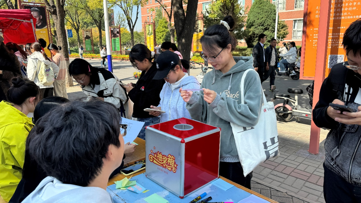 在活动现场共有三种参与方式:同学们在便签上写下自己对家中长辈朋友的祝福或与重阳节相关的诗词,并张贴在祈福墙上;同学们抽取箱子中的纸条,回答关于重阳节的诗词以及常识问题;扫码填写重阳节相关问卷。每一项活动都旨在通过不同形式,展现重阳节的独特韵味,让公司学子在轻松愉快的氛围中,深刻体会“老吾老以及人之老”的中华美德。