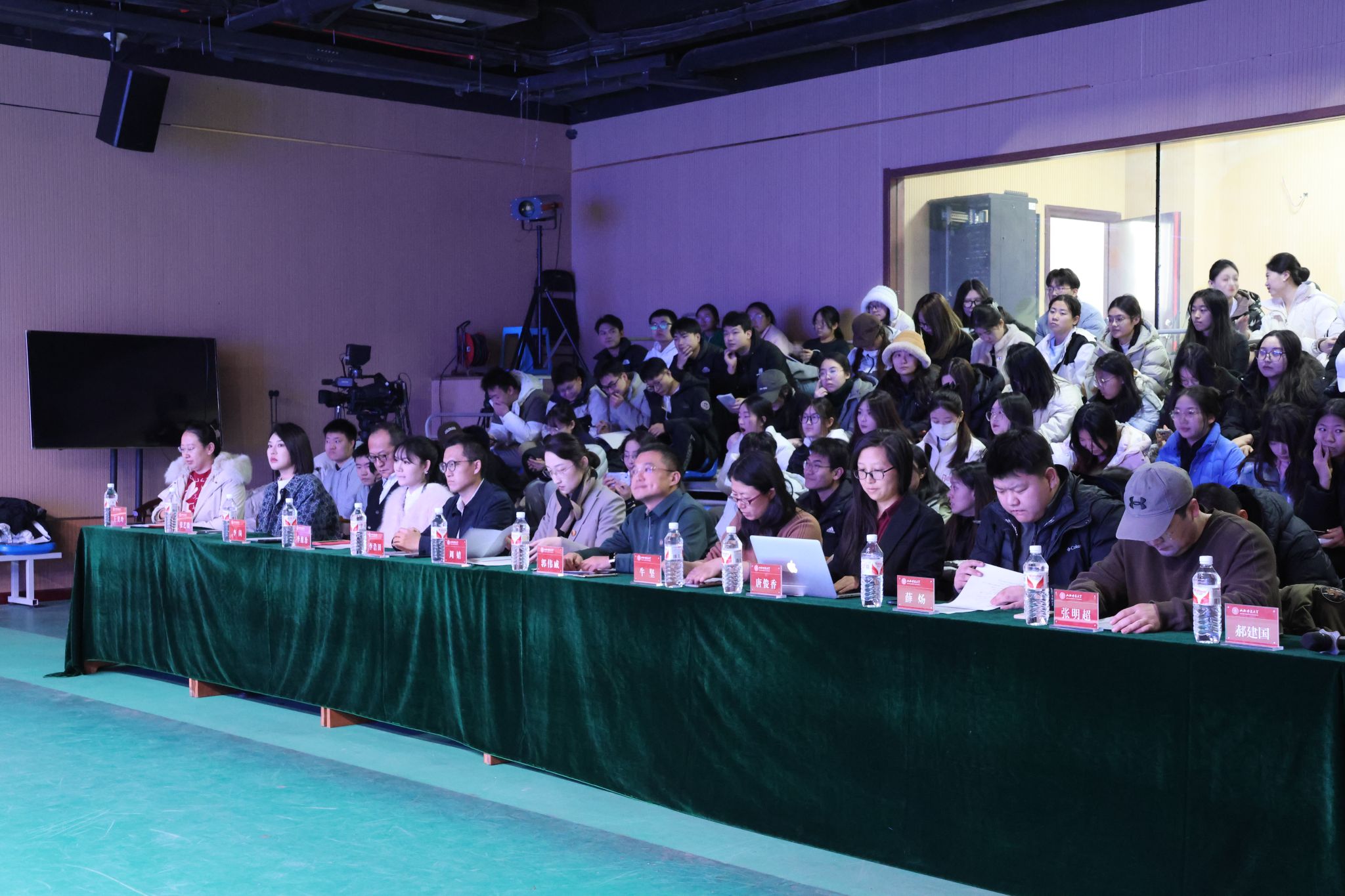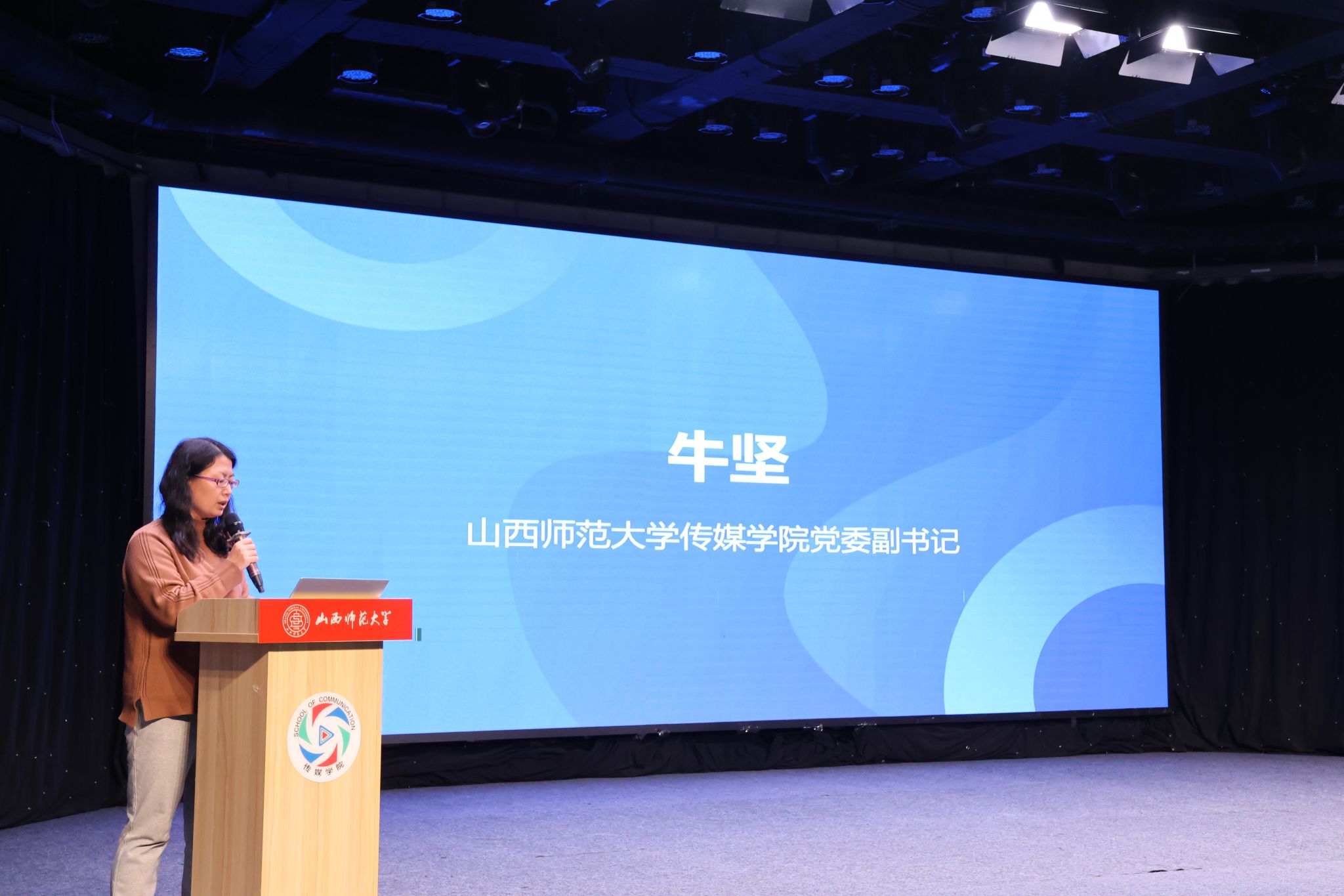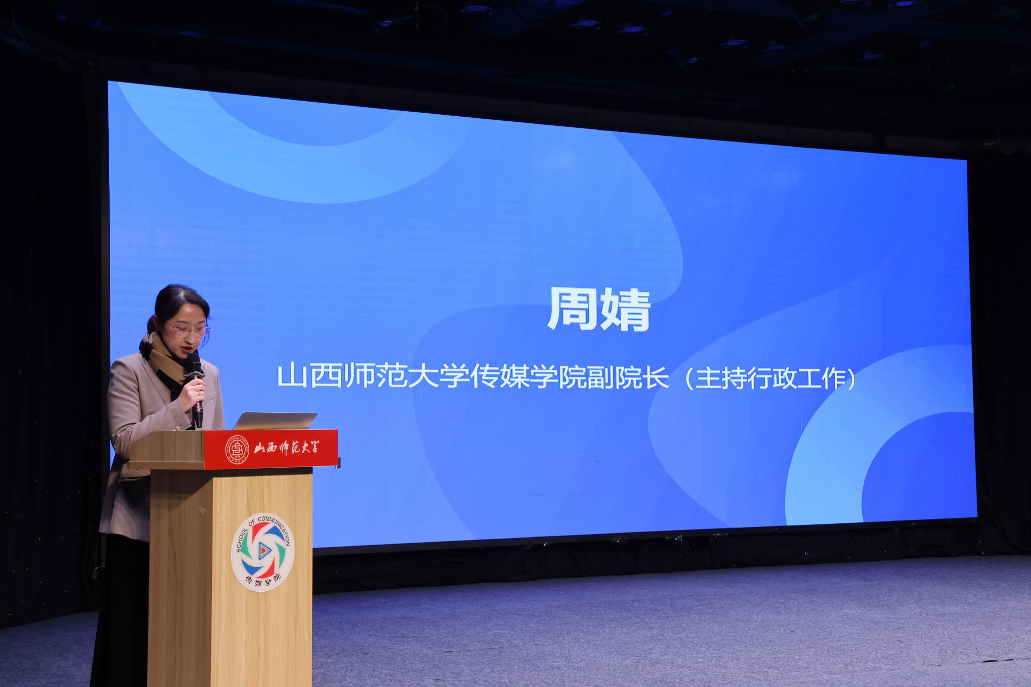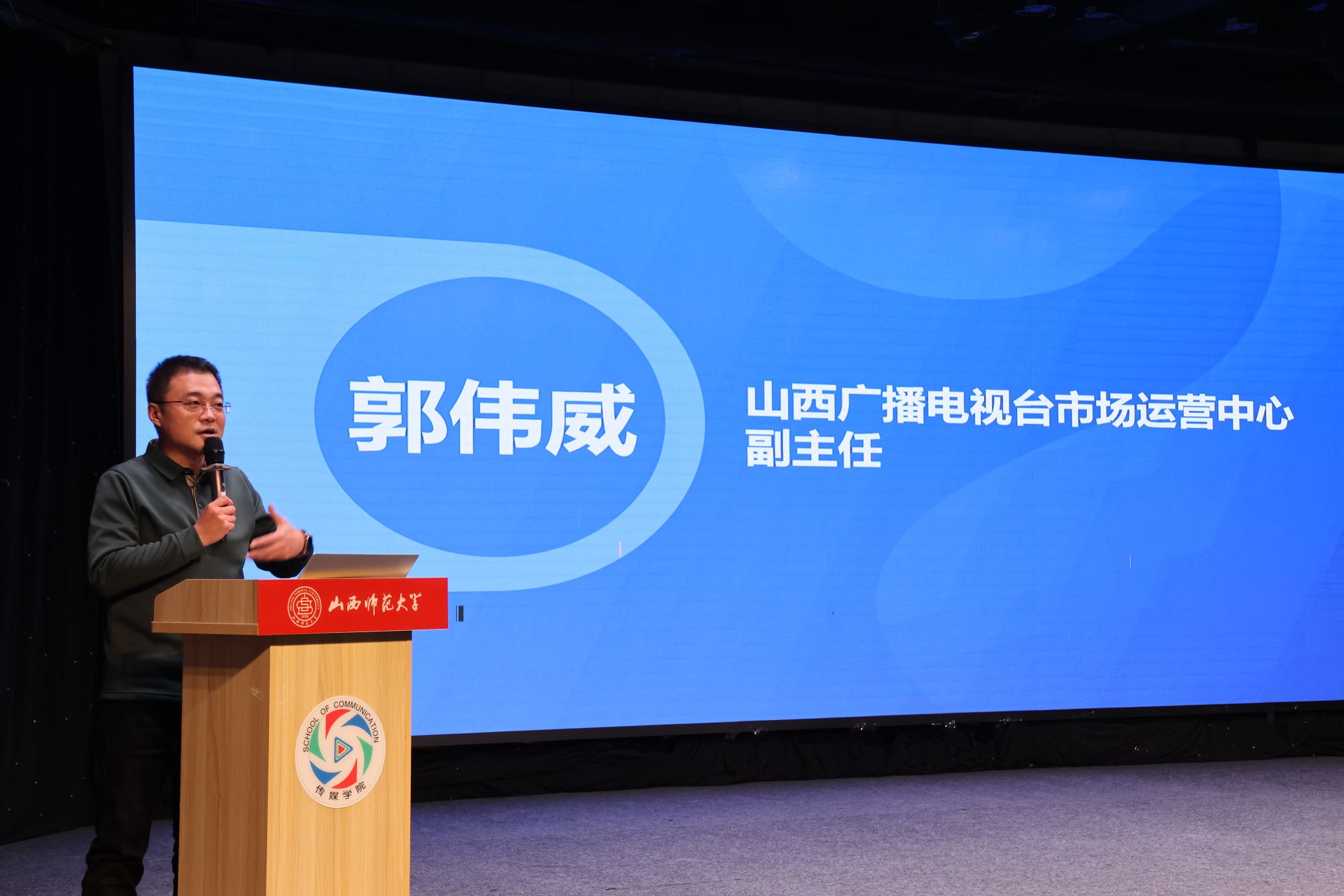 12月24日下午,公司于科学会堂演播厅召开了2025年实习与就业动员培训会。合作单位山西广播电视台、山西省安装集团股份有限公司、山西金葡萄供应链有限公司及方塘云影(山西)文化传媒有限公司相关负责人受邀参会。公司副经理(主持行政工作)周婧、党委副书记牛坚、副经理郝建国、广编系主任张明超、21级广编辅导员王美玲及23级研究生、21级本科生参会。会议由副经理郝建国主持。