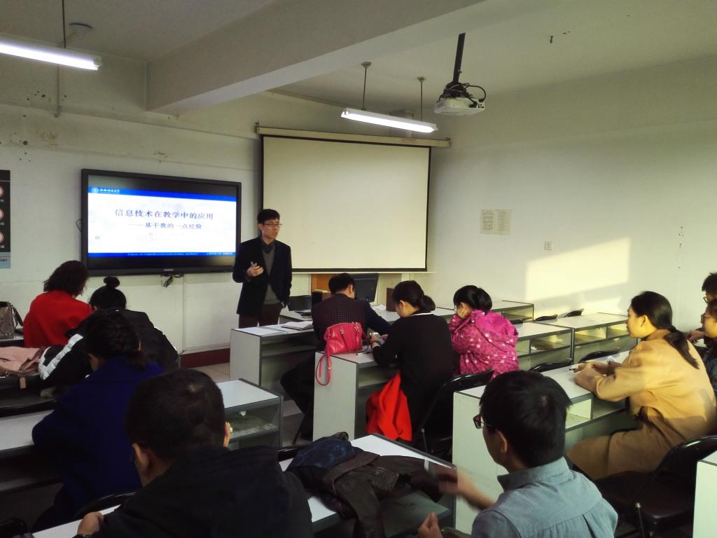 112日下午,emc易倍全体教师在院B503会议室召开教研活动,由副经理汪存友老师做“信息技术在教学中的应用”教改讲座。
