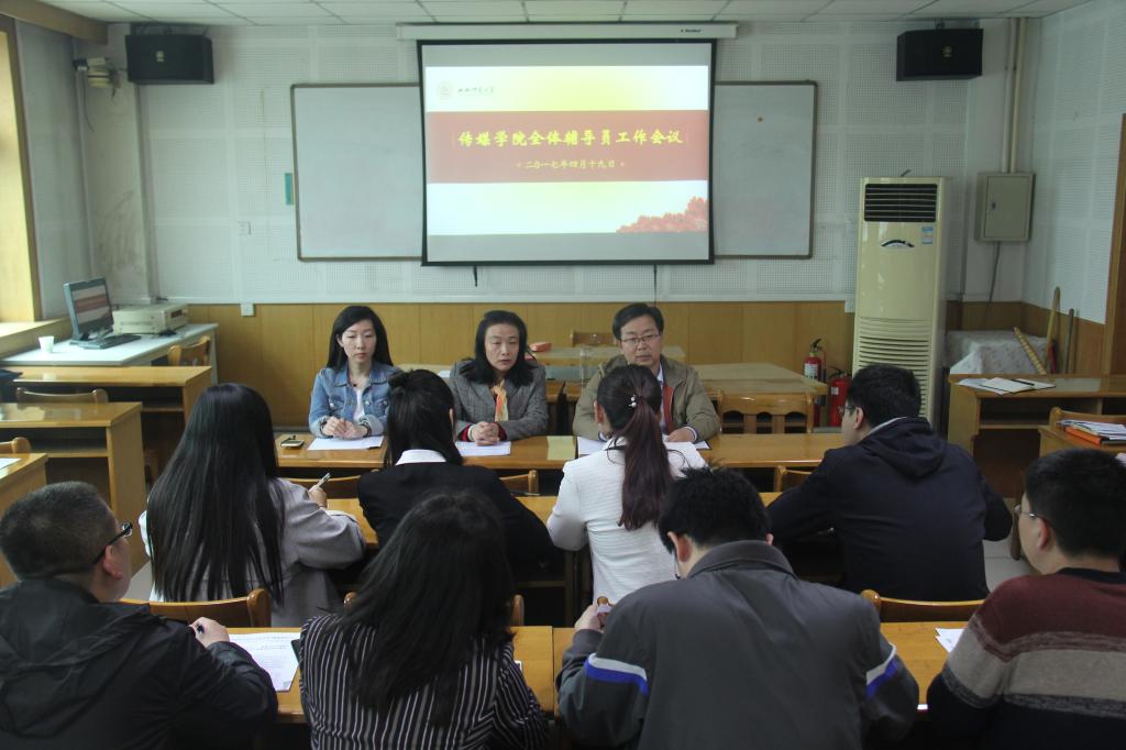 4月19日上午,emc易倍在科学会堂B座305教室召开辅导员工作交流会议。公司党委书记邵晓慧、党委副书记王银、团委书记杨谨瑜以及全体辅导员老师参加了会议。会议由党委书记邵晓慧主持。