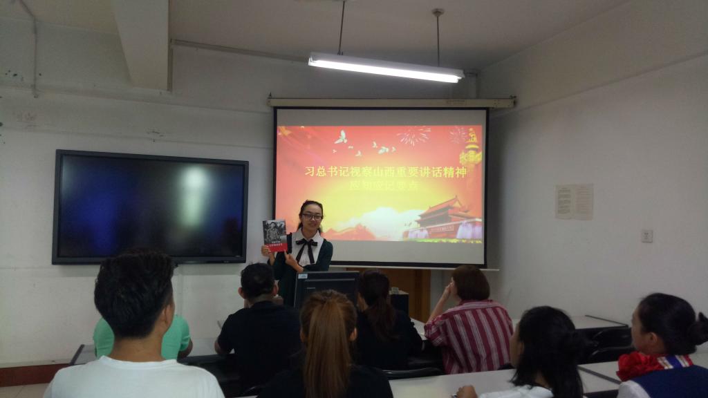 会上,郭雨欣老师带领大家认真学习了习近平总书记视察山西重要讲话精神,传达了重要讲话精神。她强调了习近平总书记视察山西重要讲话的重要性,是推进“两学一做”学习教育常态化制度化、开展维护核心见诸行动主题教育和加强“三基建设”的重要内容,都具有重要意义。同时为广大青年学子健康成长指明了方向、寄予了厚望,也为培养中国特色社会主义法治人才提供了科学指南和根本遵循。