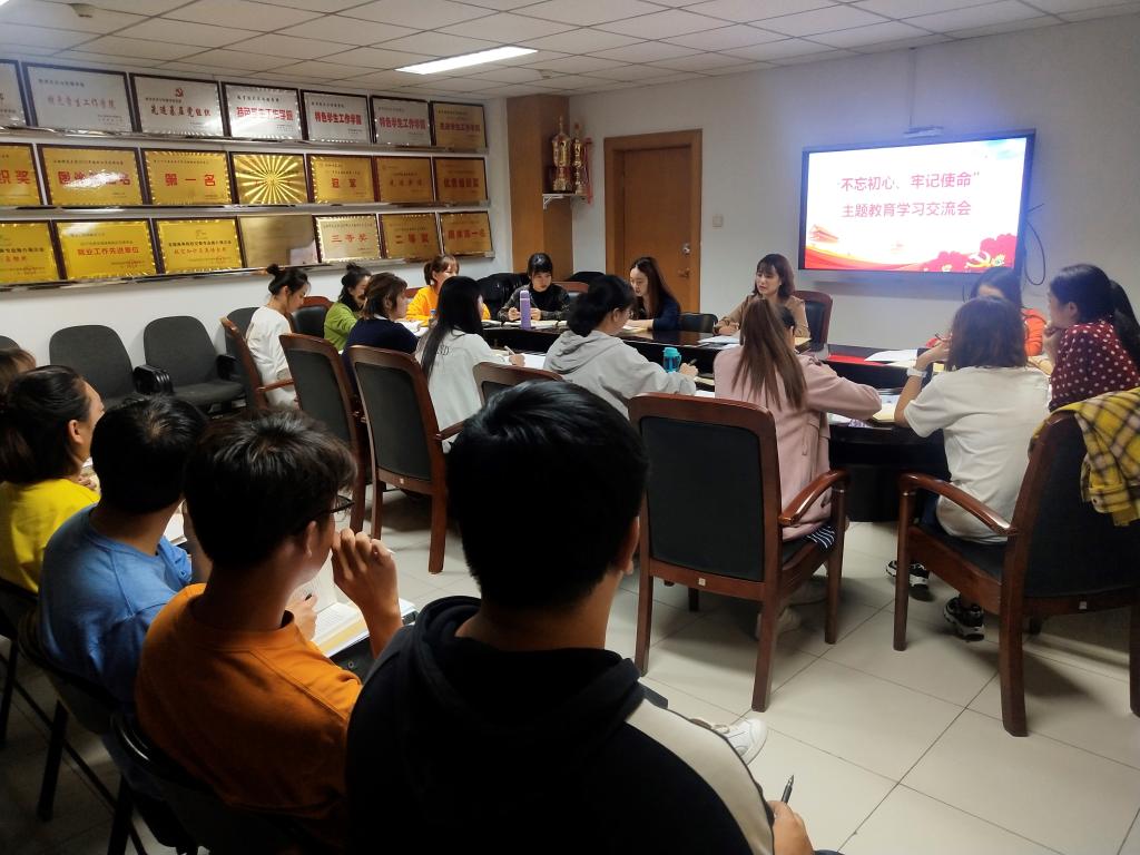为深入学习贯彻习近平新时代中国特色社会主义思想和党的十九大精神,扎实推进“不忘初心、牢记使命”主题教育的开展。9月19日晚7点,传媒员工党支部在科学会堂B座503召开了“不忘初心、牢记使命”主题教育学习交流会。支部全体成员参加,会议由支部书记文婷主持。