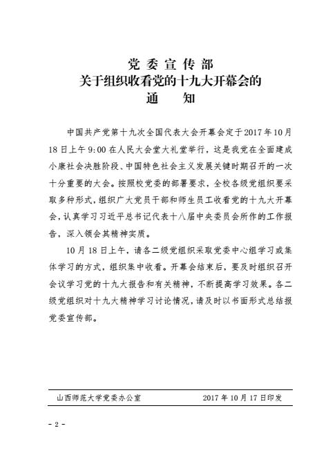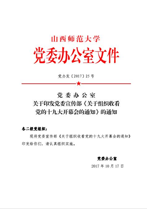 党委办公室关于引发党委宣传部《关于组织收看党的十九大开幕会的通知》的通知