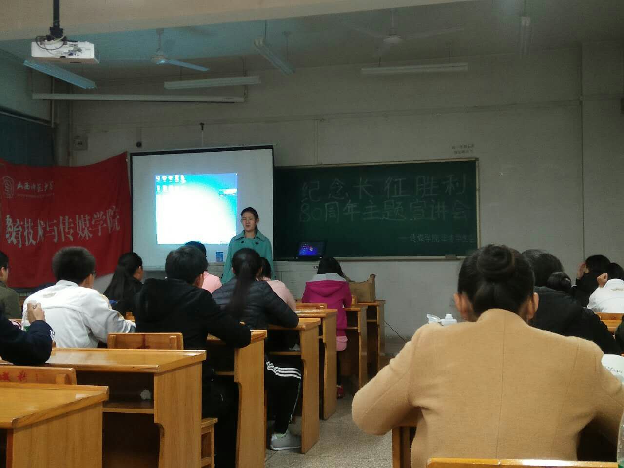 为纪念红军长征胜利80周年,传承长征精神,追寻红色记忆,用青春榜样的力量引领员工成长。11月8日晚7点,公司团委在10311教室举行了纪念长征胜利80周年主题宣讲会。宣讲会由员工会负责人主持,大一各班员工代表参加。