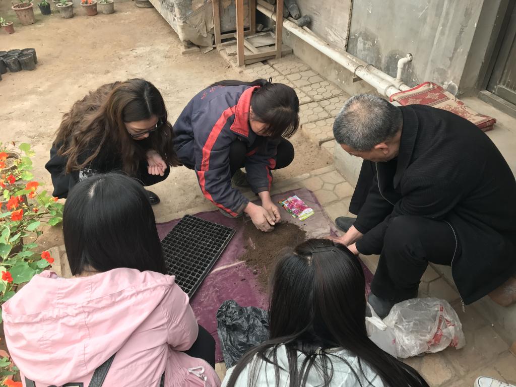 同学们首次来到师大校园的花圃,大家仿佛进入了被花海包围的世界,都感到十分兴奋。同学们跟随工作人员一起学习基础的种植技术,准备好适于种植的土壤,并对土壤进行揉搓,使其变得松软。再用清水浇灌,使土壤湿润,接下来便能够播种了。整个过程虽然简单,但需要十分耐心与认真,精准把握。同学们跟工作人员聚精汇神地学习,很快掌握了技巧。大家共同种植花种,分享劳动的快乐。经过共同努力,同学们的花种成功种植。