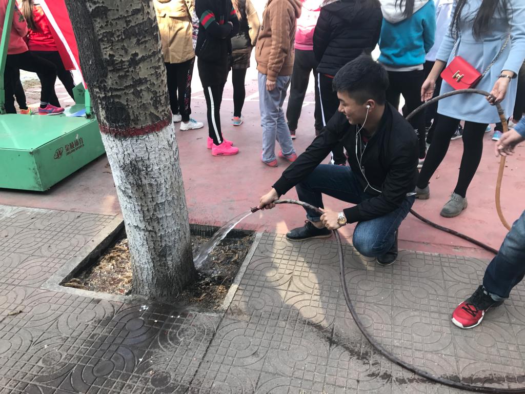 公司团委员工会于3月7日下午,组织员工会全体成员,为校园操场周边的树木进行浇水以及绿化保护活动。