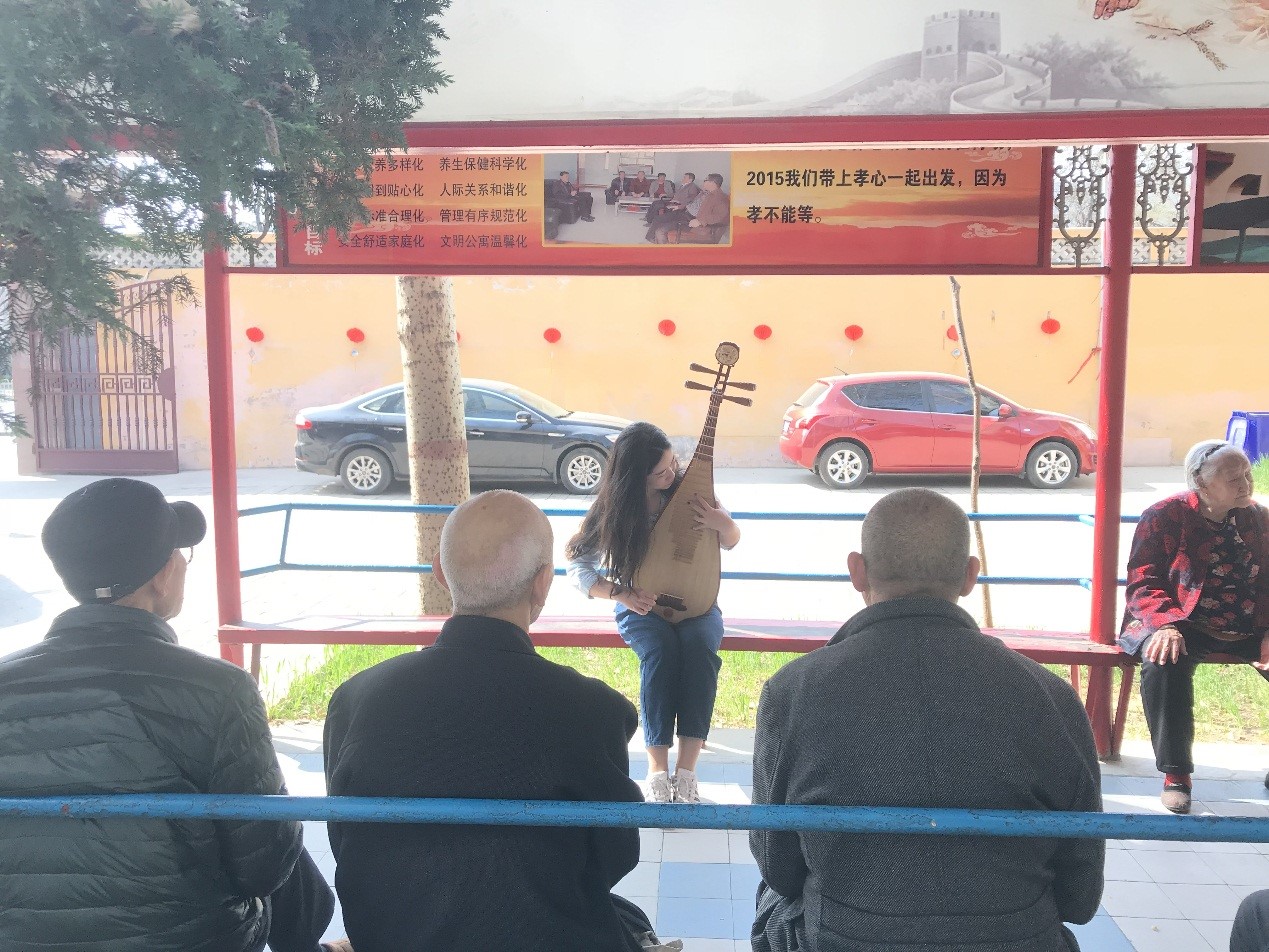 同学们给老人表演了节目,节目类型多种多样,有琵琶弹奏、诗歌朗诵、歌曲演唱、评书、舞蹈、戏曲演唱等。朗诵团全体齐颂了《1982》、《祖国,一首唱不完的恋歌》等作品,同学们气壮声昂,展示了朗诵团的气势。乔学帅同学还开启了“点播”服务,与老人合唱了《草原上升起不落的太阳》、《走向复兴》、《党啊,亲爱的妈妈》等歌曲。马诗雨的舞蹈、薛炀的歌声、大帅与老人的合唱……在一个个节目中,艺术团的同学们用文艺表演的形式为老人们带去欢乐,陶冶了情操,拉近青年与老人的距离。本次活动在老人的欢笑与感动中结束,同学们表示在给老人们散播欢笑散播爱的同时,自己也收获了喜悦。